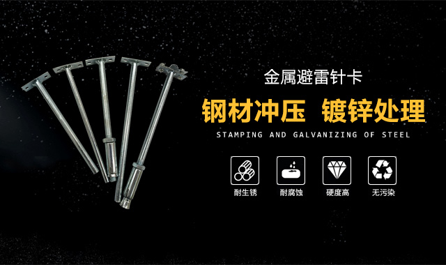 文安县民强五金厂坐落于文安县澎耳湾工业企业,地理位置便利,交通方便。我厂生产各种规格避雷针卡(避雷针卡子)、6-16mm膨胀螺栓、龙骨配件内胀、U字卡、吊卡、暖气挂钩等建筑小五金件,我厂生产的避雷卡采用钢材冲压成型,镀锌处理,防腐能力强,通过螺栓紧固连接,不破坏避雷带镀锌防腐层,且高度可调节,方便施工,是现代建筑防雷工程的换代产品。